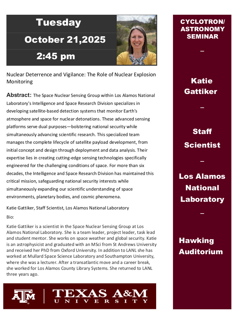 On January 3, 2005 the Cyclotron Institute Upgrade Project (CIUP) began with the approval of the CIUP management plan by the Department of Energy Office of Nuclear Physics. When completed, the upgraded facility will provide high-quality re-accelerated secondary beams in a unique energy range in the world. Funding for the upgrade comes from several sources: the Department of Energy, matching support from TAMU, the Robert A. Welch Foundation and beam time sales for testing electronics components at the Cyclotron Institute.